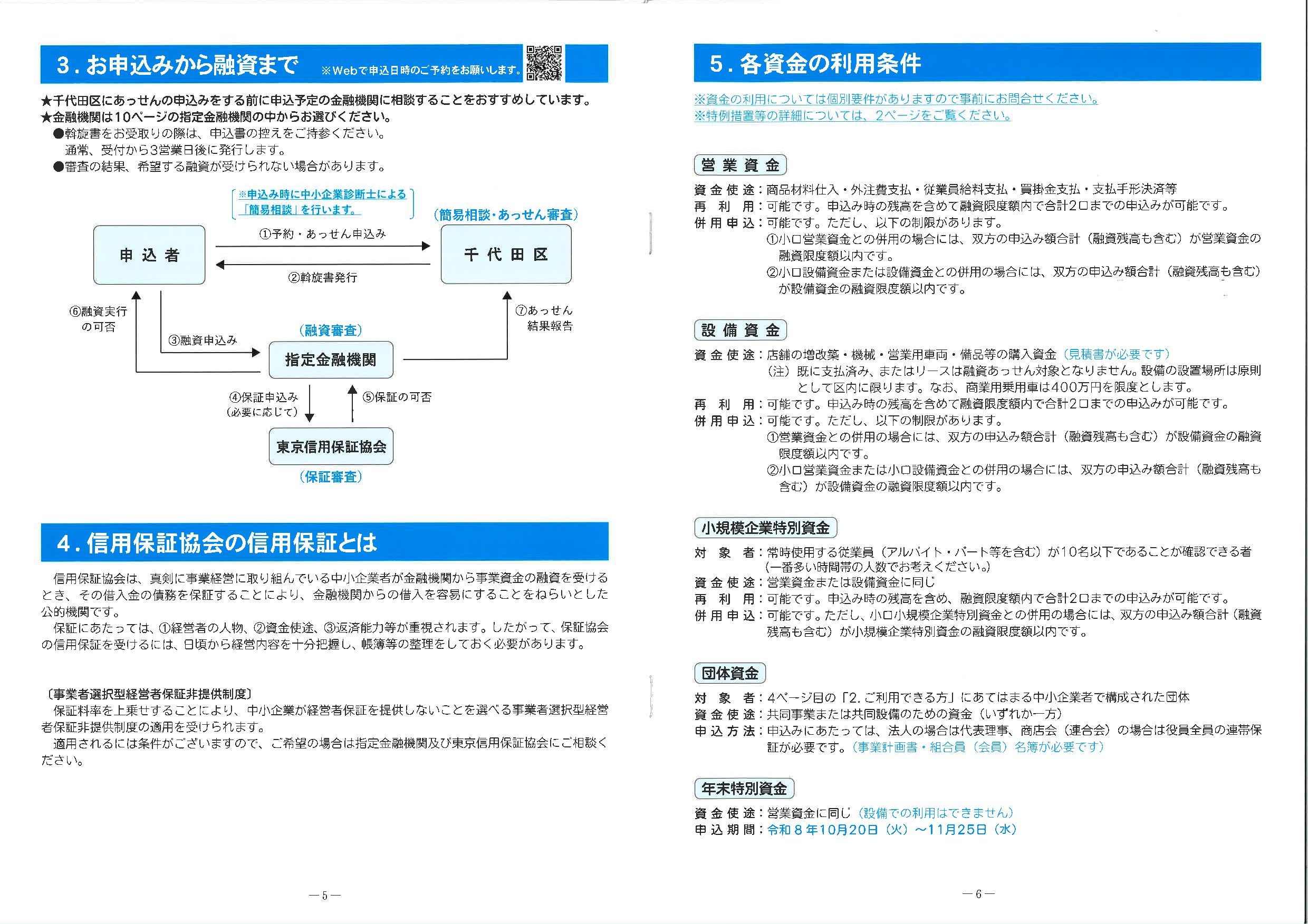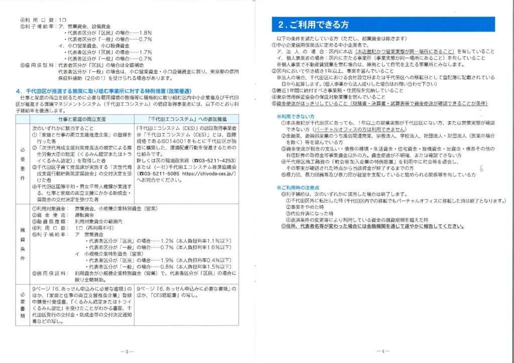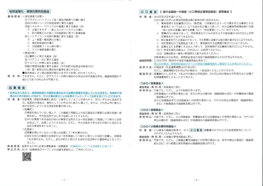 金融機関から融資を受けにくい中小企業者の方々のために、千代田区、指定金融機関および東京信用保証協会が協調することにより、融資のあっせんをする制度です。