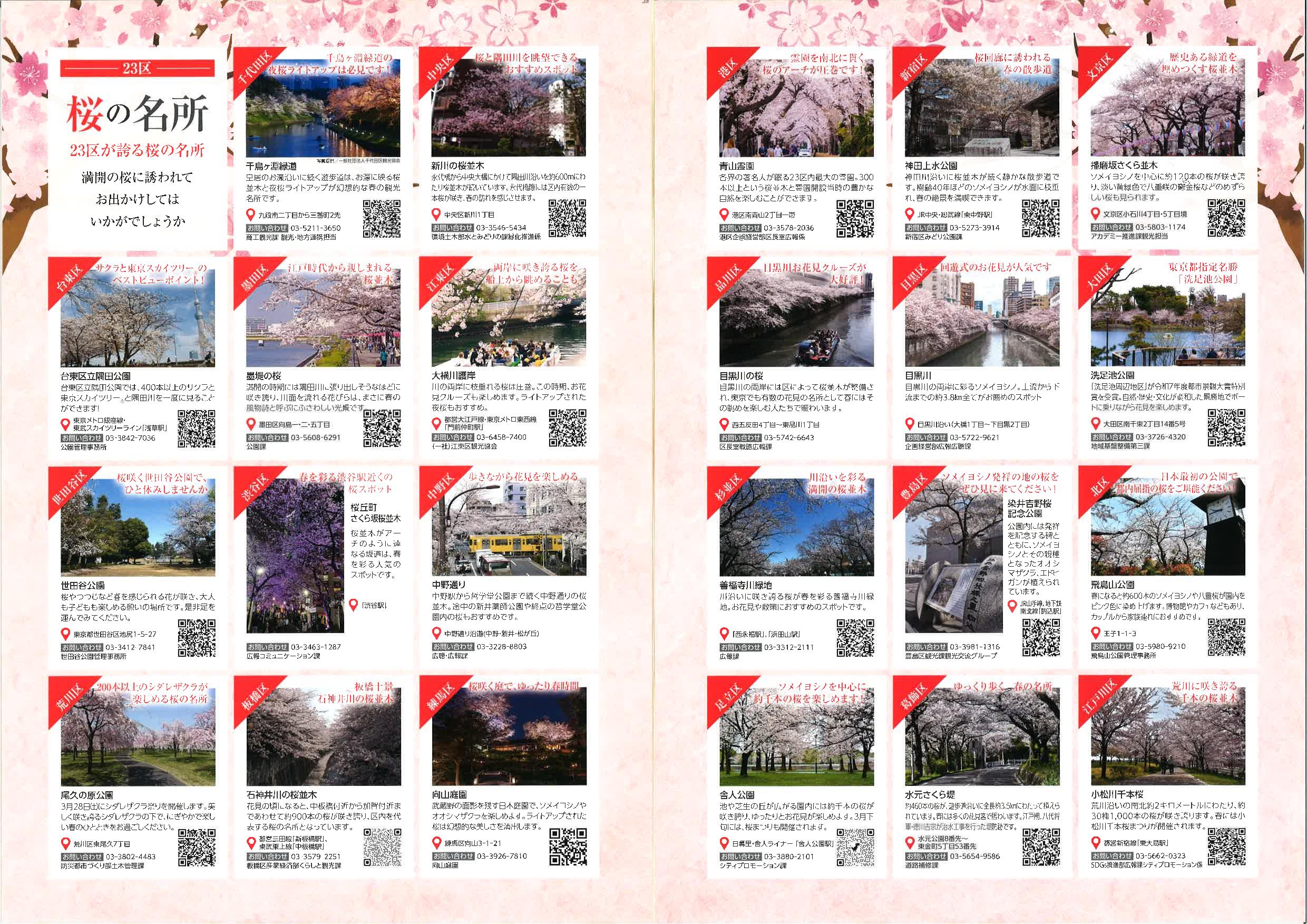 23区の桜の名所一覧あり
