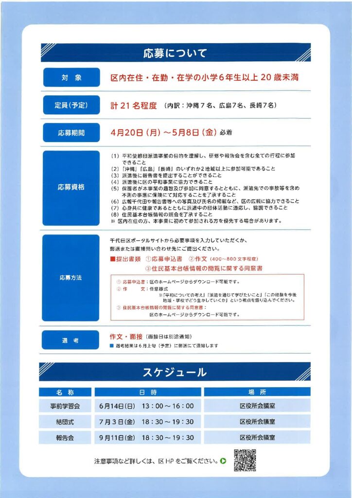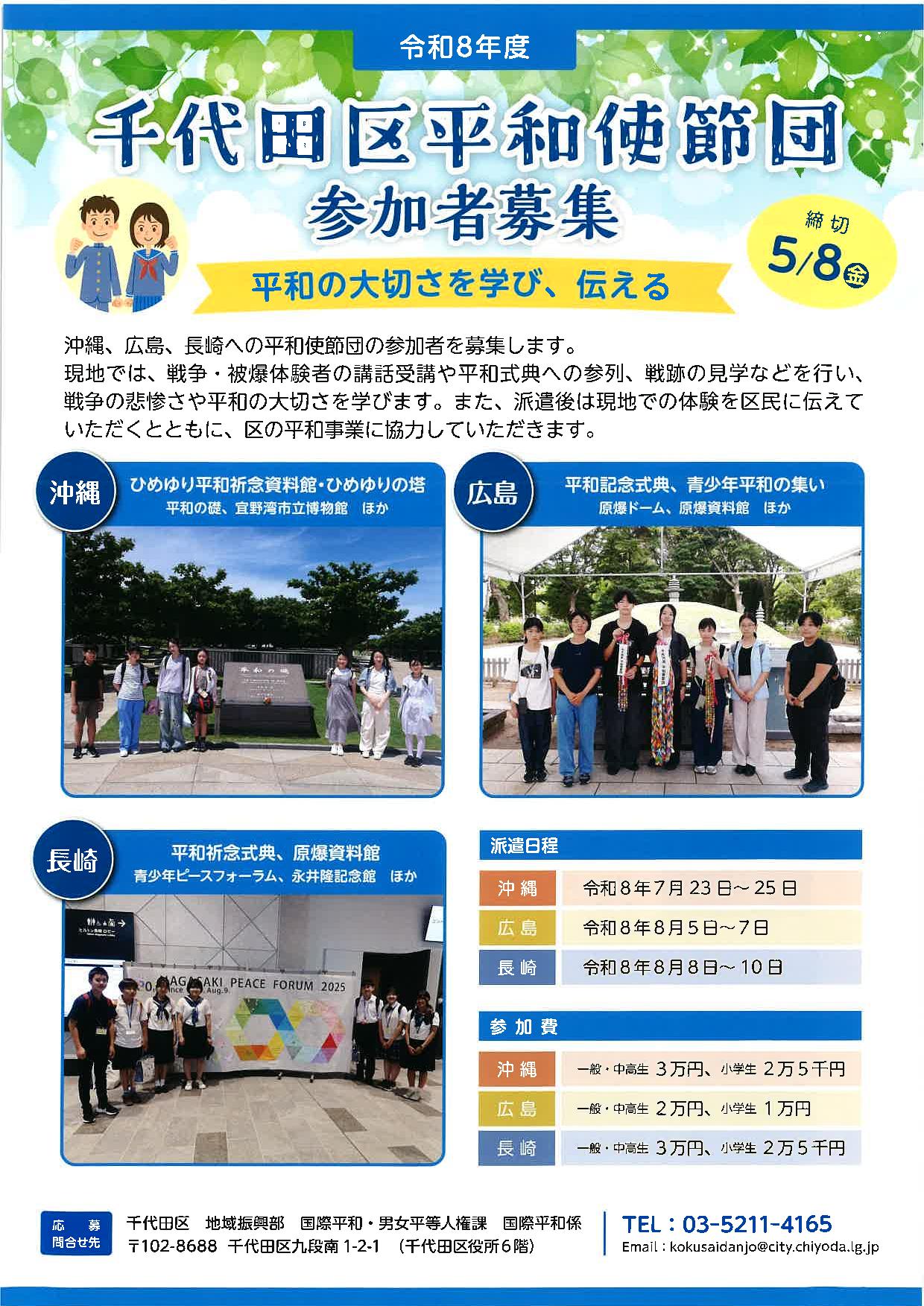 千代田区平和使節団参加者募集中です(締め切りは5月8日)