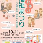 第23回 ふれあい福祉まつり ~つながる心 かがやく千代田~ - 第23回 ふれあい福祉まつり ~つながる心 かがやく千代田~ 場所:千代田区役所/かがやきプラザ 日付 2025年10月11日(土)10:00~15:00 フクシチャレンジ、防災体験ブース、子ども服おゆずり交換会、クイズ […] 第23回 ふれあい福祉まつり ~つながる心 かがやく千代田~ - 第23回 ふれあい福祉まつり ~つながる心 かがやく千代田~ 場所:千代田区役所/かがやきプラザ 日付 2025年10月11日(土)10:00~15:00 フクシチャレンジ、防災体験ブース、子ども服おゆずり交換会、クイズ […]